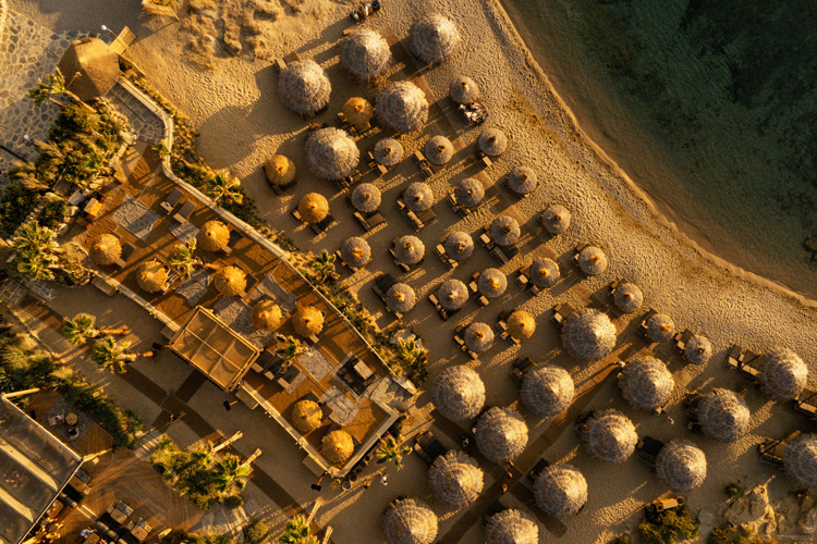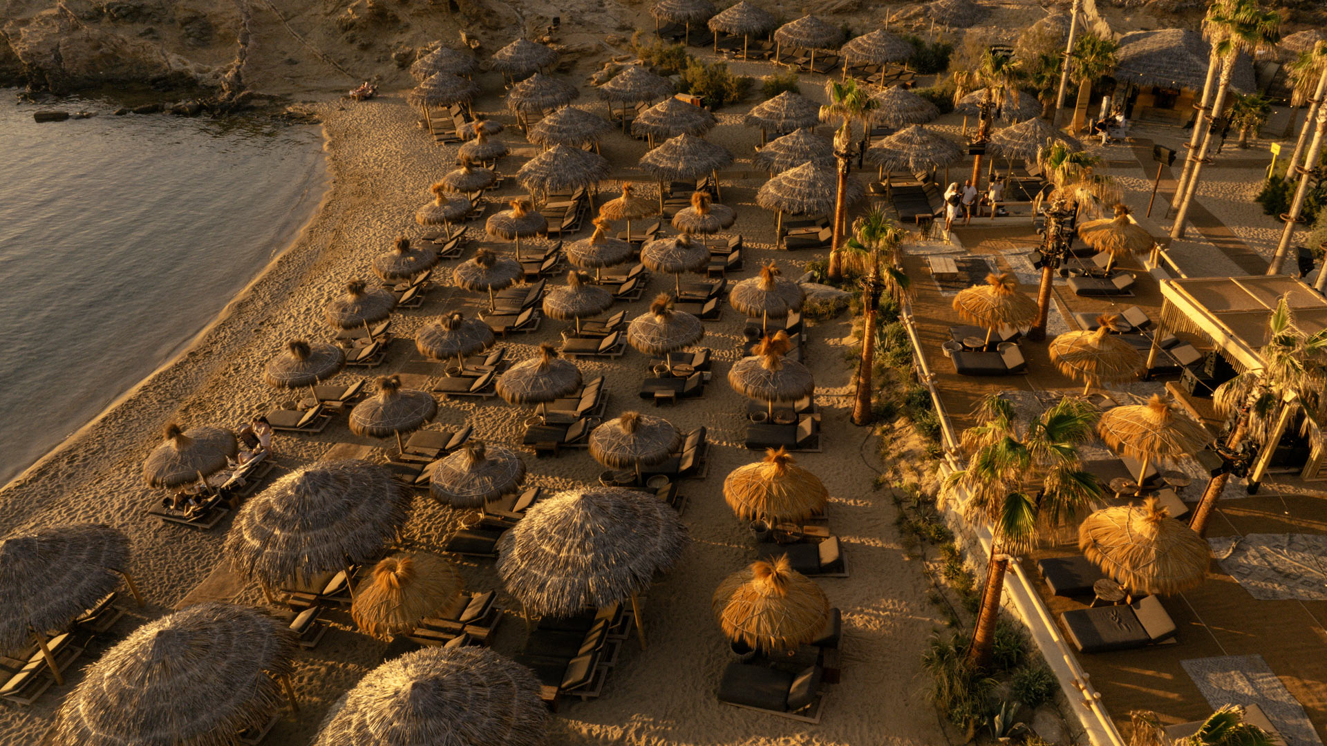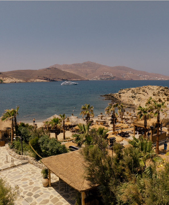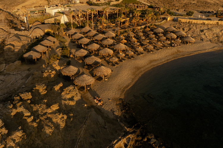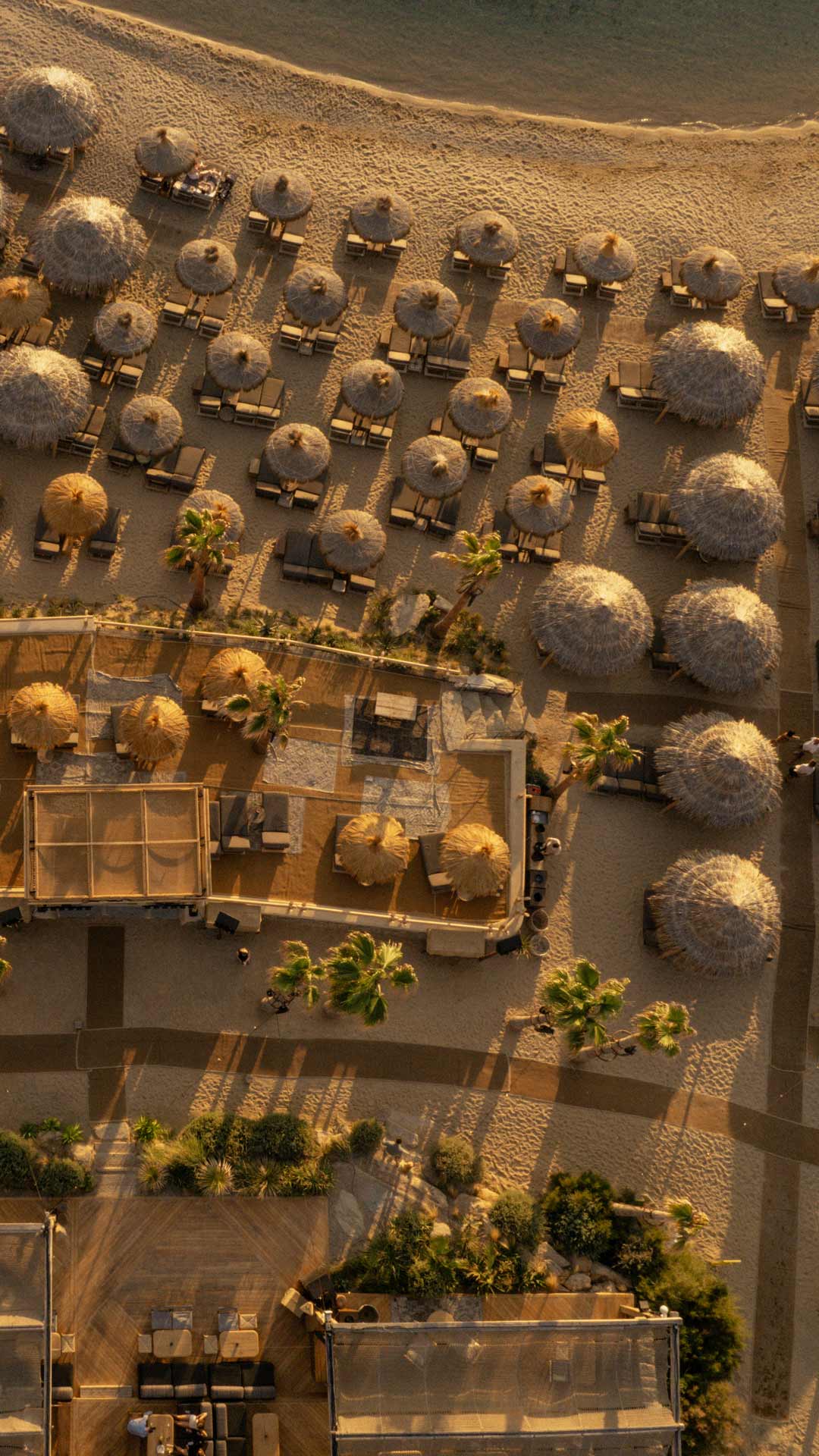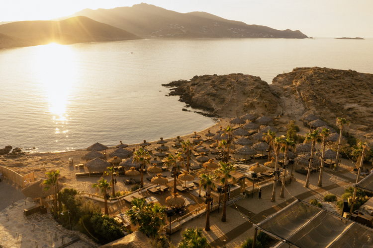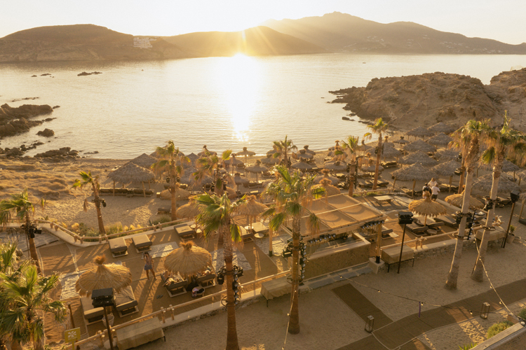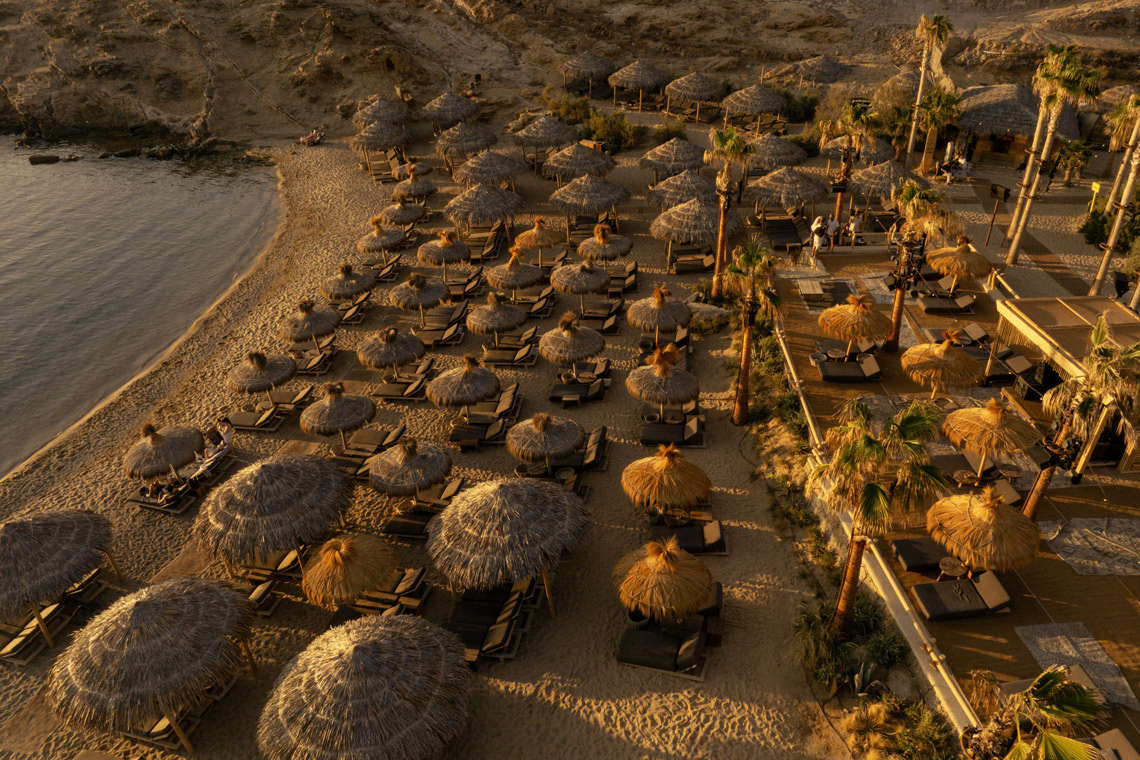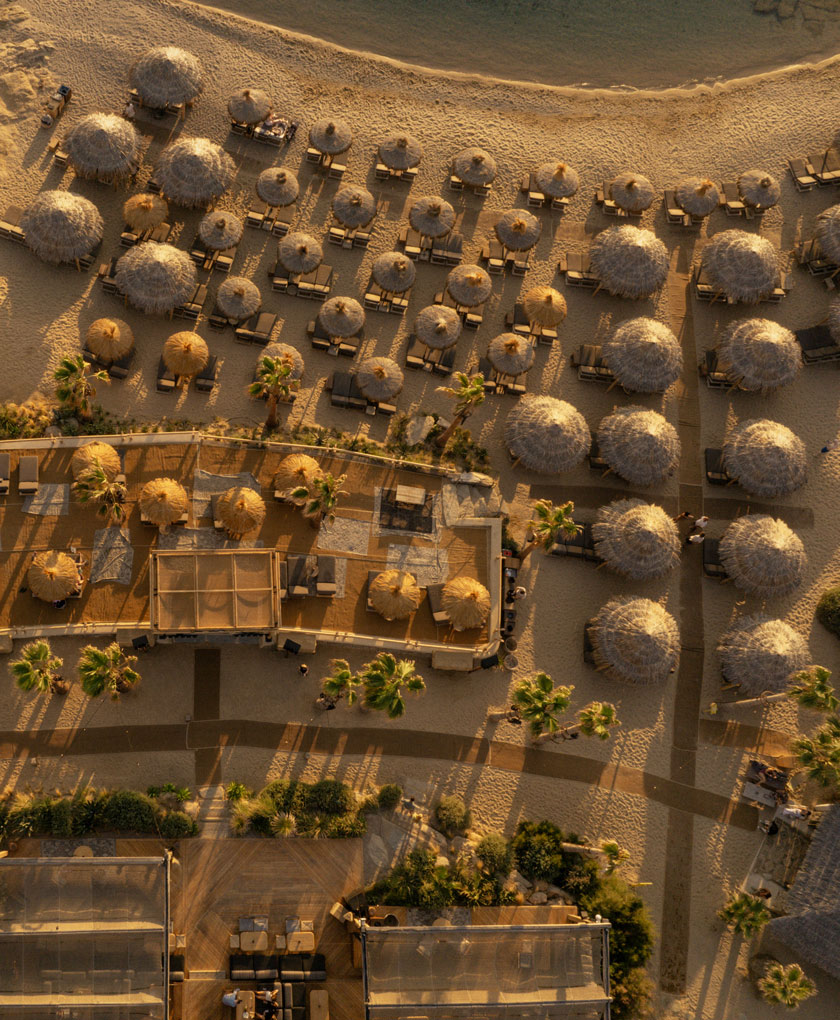 Through this approach, the beach can preserve its inviting daytime character yet effortlessly shift into an exclusive event setting when needed. The landscape design elevates the overall experience, complementing the venue’s existing architecture and amplifying the unique spirit that has made Alemagou a benchmark of summer life in Mykonos.