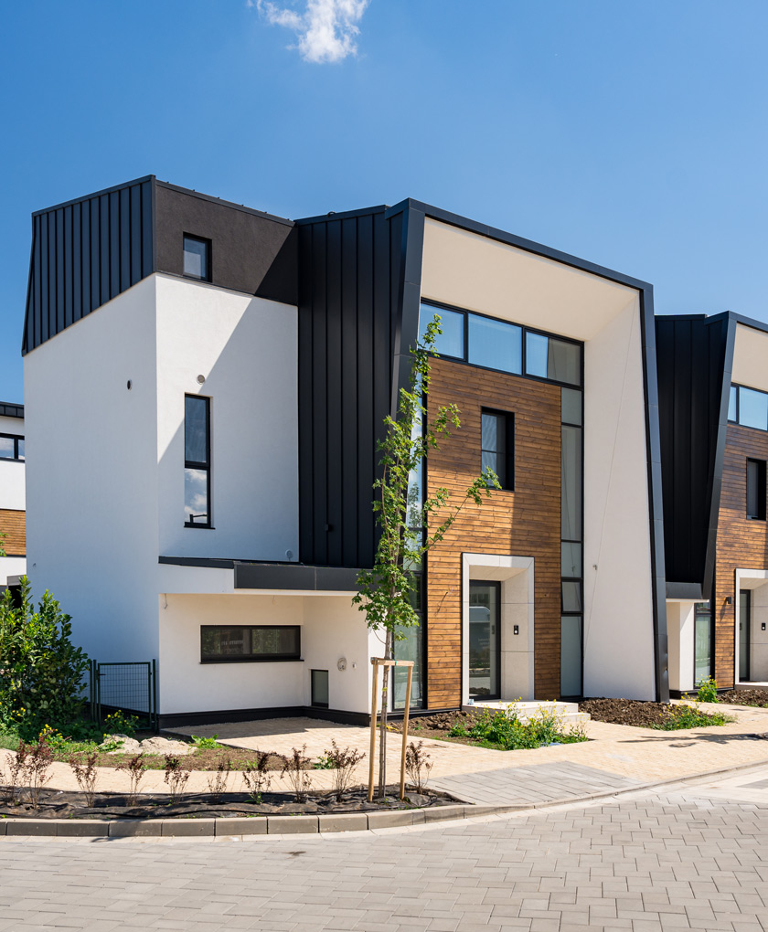 Set in the leafy suburbs of Bucharest, these row houses are designed to meet the expectations of ease and convenience associated with the modern home. Through intelligent principles, and key environmental features such as incorporating bioclimatic design, these houses marry sustainable elements with functional purpose.