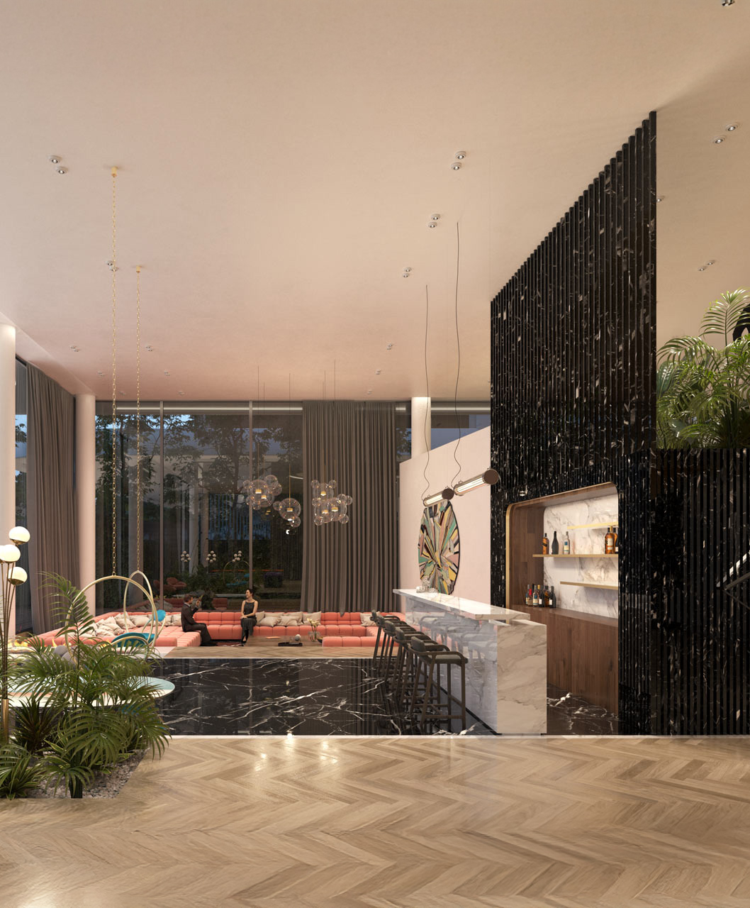 Located in the heart of forest, there is an emphasis on biophilic design, with apartments created to optimise natural light and with a view to providing plenty of open communal space for residents to enjoy. Some of the houses also include green rooftops to further integrate the design into the surrounding area. Employing high grade materials such as natural stone and marble fixed on honeycomb panels – the apartments focus on offering everyday luxury for residents. In emphasising open and communal space, the project also supports the flourishing of the local community.