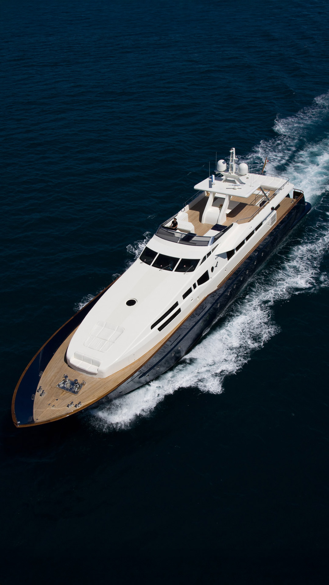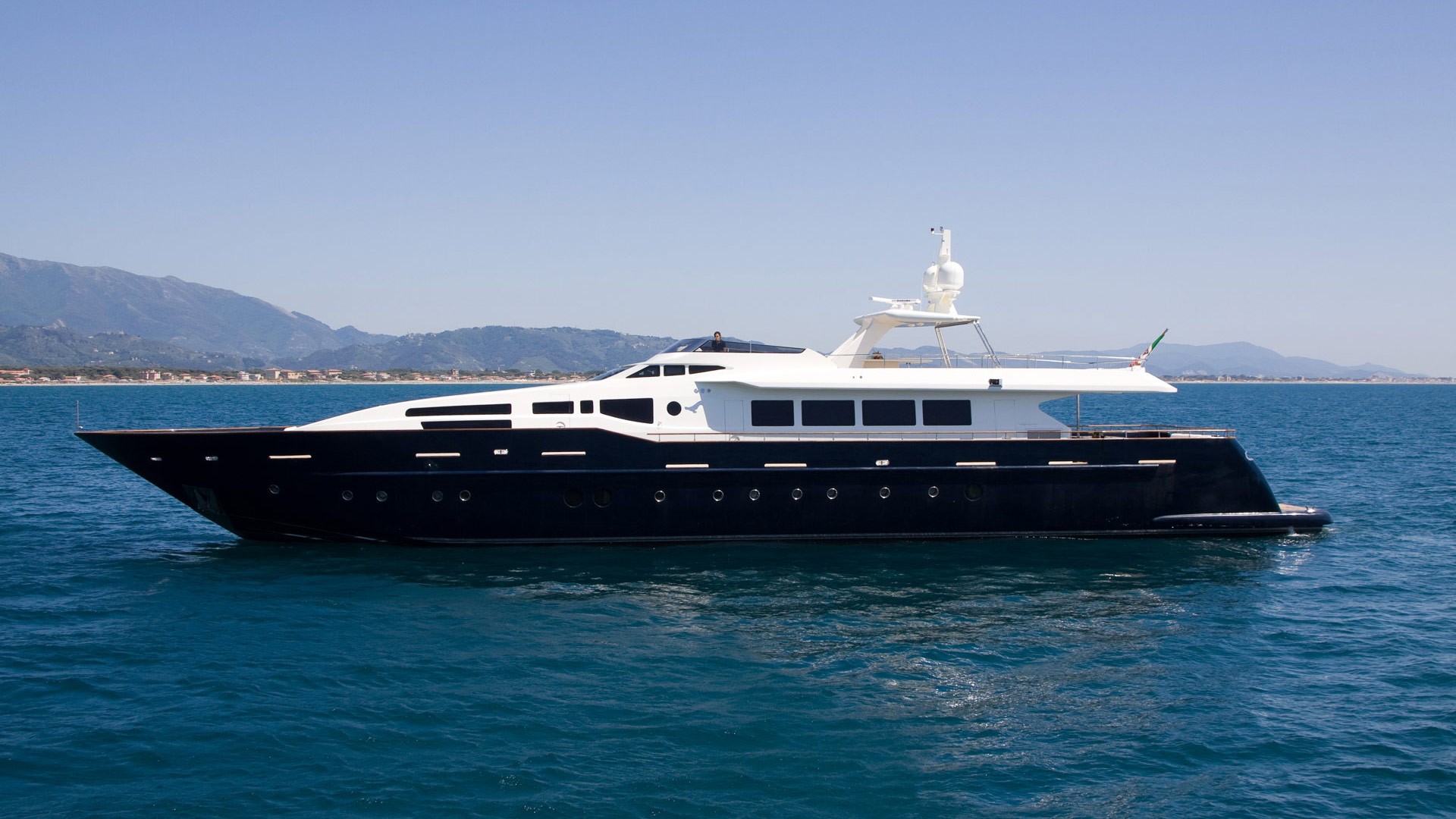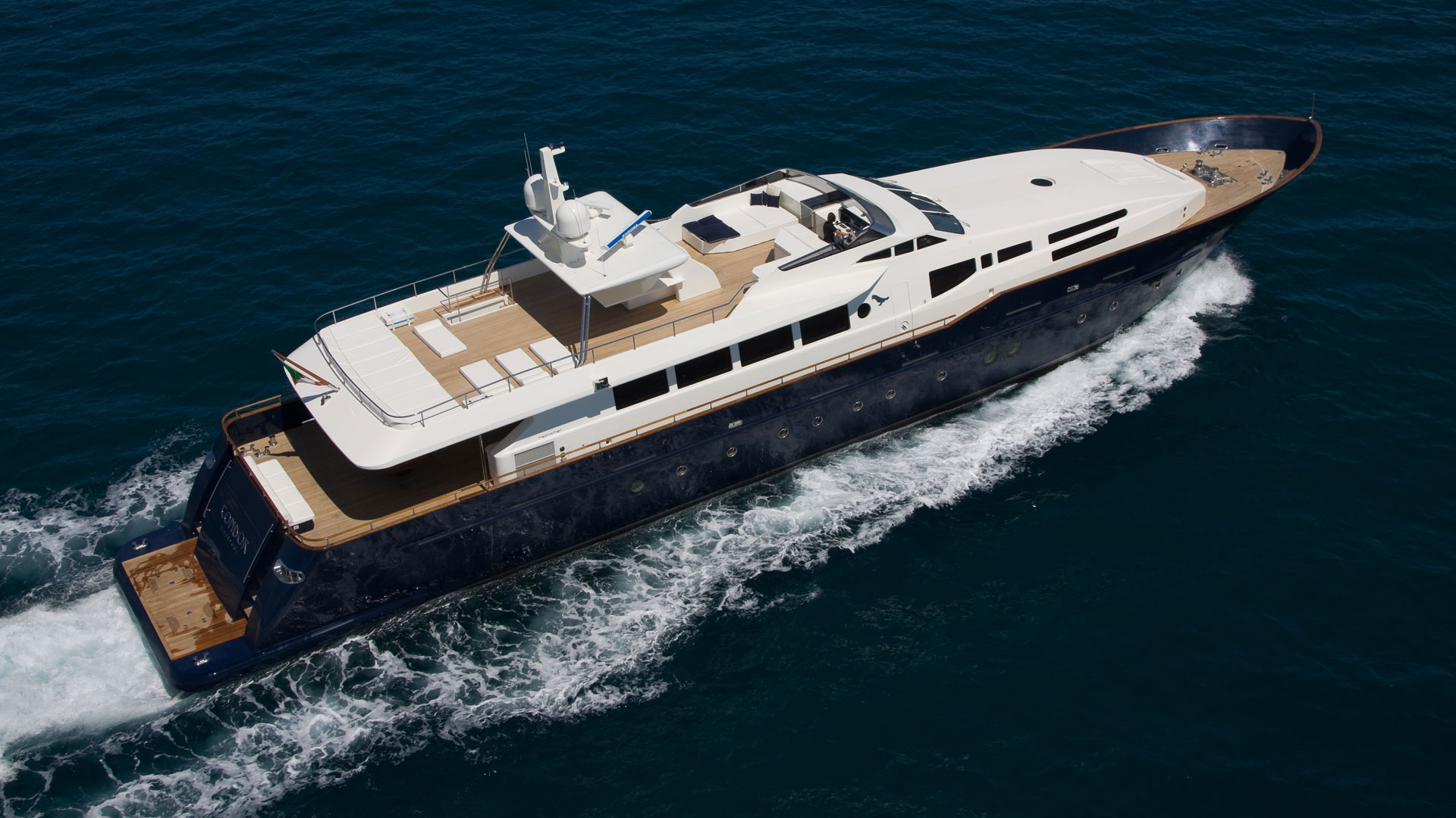 Built in Viareggio, Italy at the Tecnomar shipyard, the yacht features 1 Master Cabin, 5 Guest Cabins, 4 Crew Cabins. The cabins, a living room, dining room and staff areas and sits across three levels: the lower deck, where the owner’s, visitors’ and crew cabins are located; the main deck where the living room and dining room are located; and the wheel house, which is located between the main deck and the sun deck. Great care was taken to ensure separate living areas and passages for the staff and the guests.
