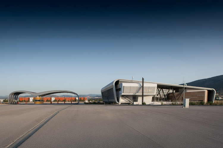 Head out from Athens along the Attiki Odos highway towards Elefsina, and the Freight Centre and Shorting Station of the Railway Agency of Greece could take the uninformed passerby by surprise. Created to fulfil the complex functional needs of distribution logistics, the design nevertheless brings a futuristic urbanism to the heart of an otherwise vacant site.