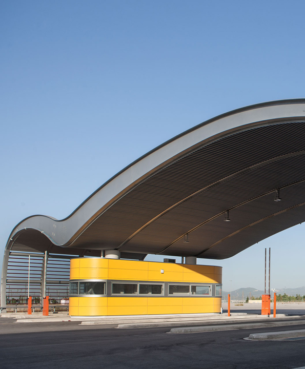 Head out from Athens along the Attiki Odos highway towards Elefsina, and the Freight Centre and Shorting Station of the Railway Agency of Greece could take the uninformed passerby by surprise. Created to fulfil the complex functional needs of distribution logistics, the design nevertheless brings a futuristic urbanism to the heart of an otherwise vacant site.