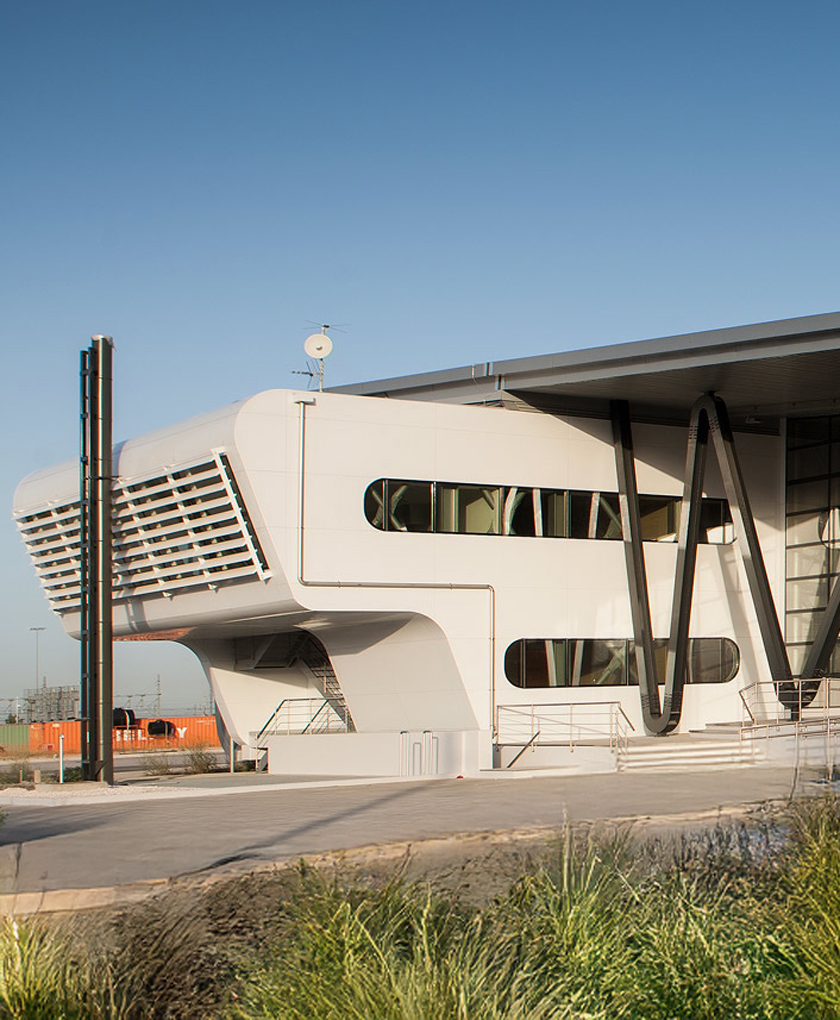 Covering an area of 760.000m², the the built area covers a total of 17.500m² above the ground level, and 3.350m² of underground areas.The needs of the site are fulfilled by three distinct parts: the control tower, a head office and the processing area, as well as two entrance gate. The synchronicity of the buildings creates an active spatial experience, reflecting the dynamics of the processing centre.