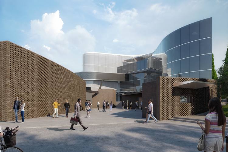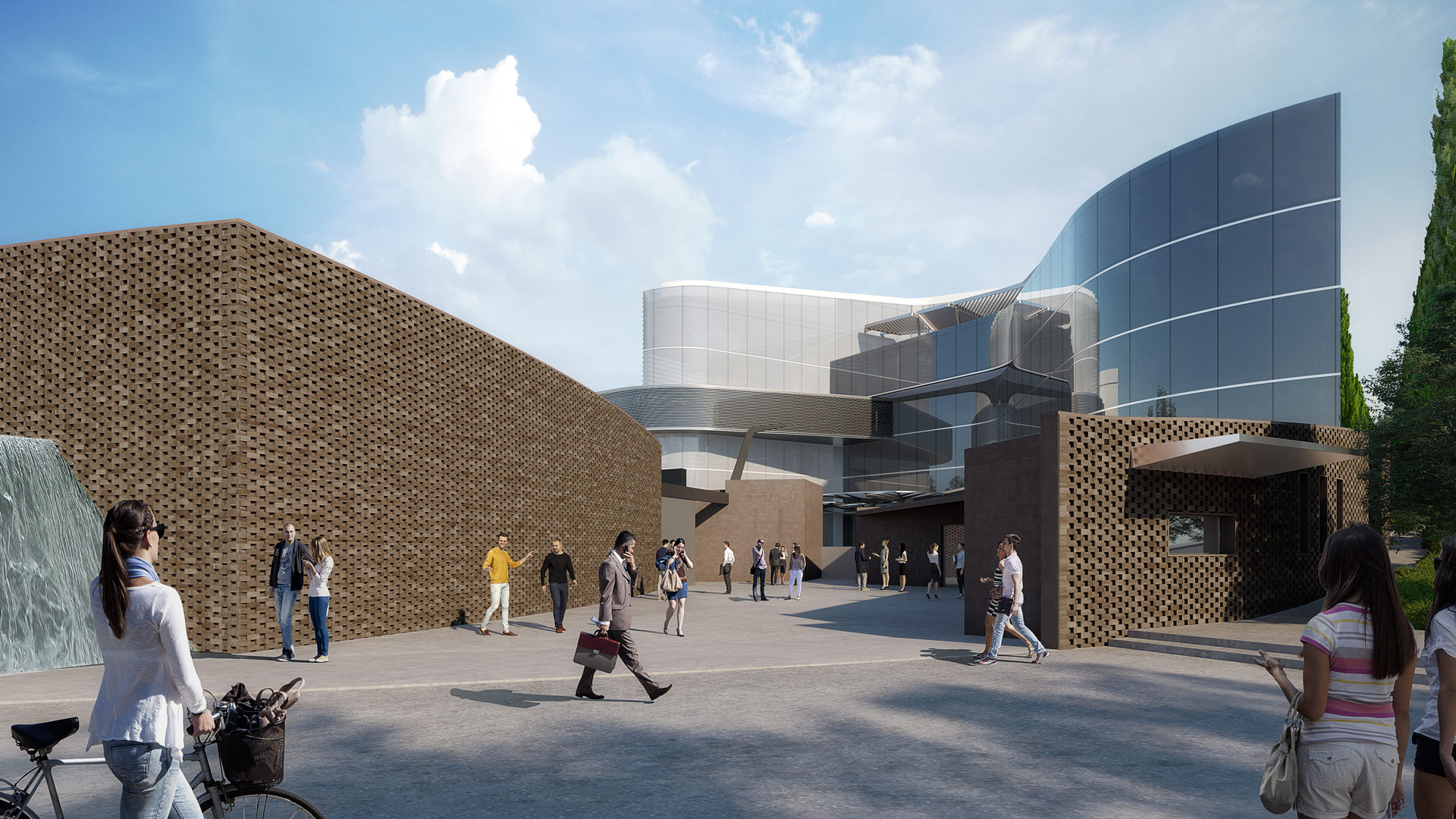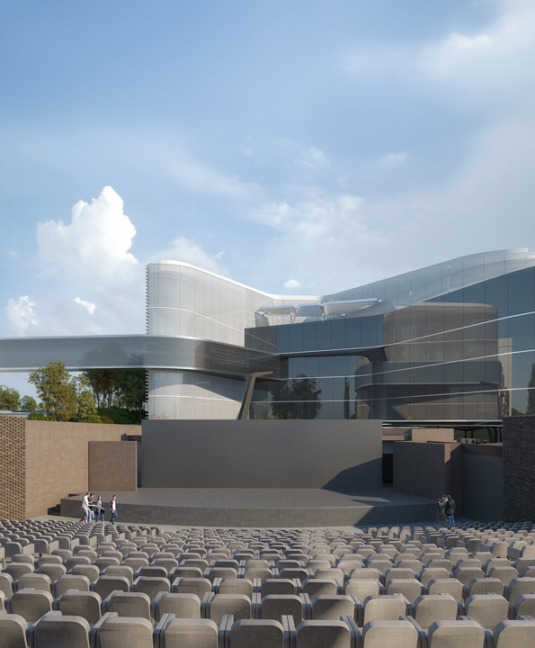 This new wing of the Institute is connected to the existing building by a steel structured bridge, enclosed in an aluminium panel envelope. Responding to the bioclimatic parameter of the region, the structure features distinct shading systems such as a special membrane on the curtain wall glazing, horizontal metal louvres and pergolas located on the exterior areas. There is also a system of photovoltaic panels at the roof. The entrance to the new building is marked by a brick facade that also denotes the presence of the amphitheatre.