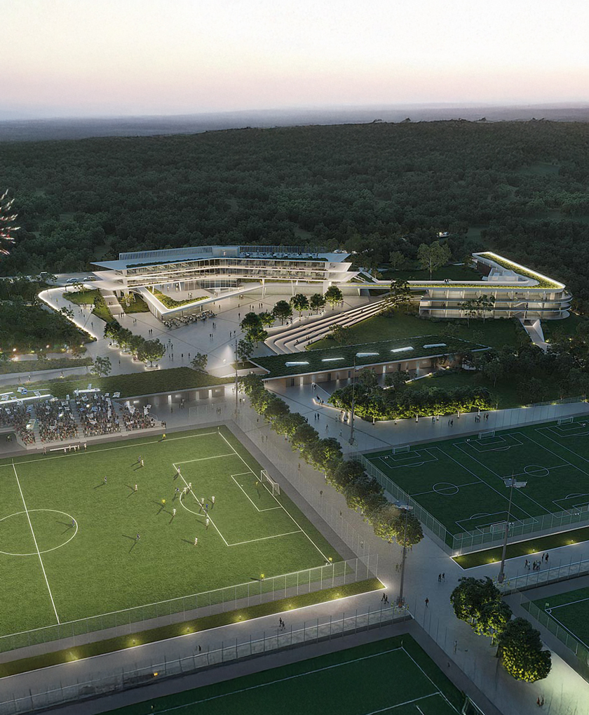 This elegant sports centre features fully serviced sports facilities, and includes offices and guest residences for visitors. Set on sweeping and verdant grounds, the site – which covers 144000m² – features three standard size soccer fields, four 5×5 sites. Changing rooms, showers and medical treatment centres are also all located in the vicinity of the main building.