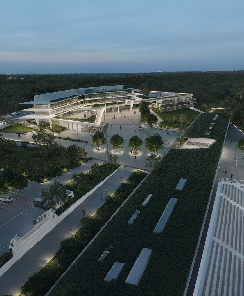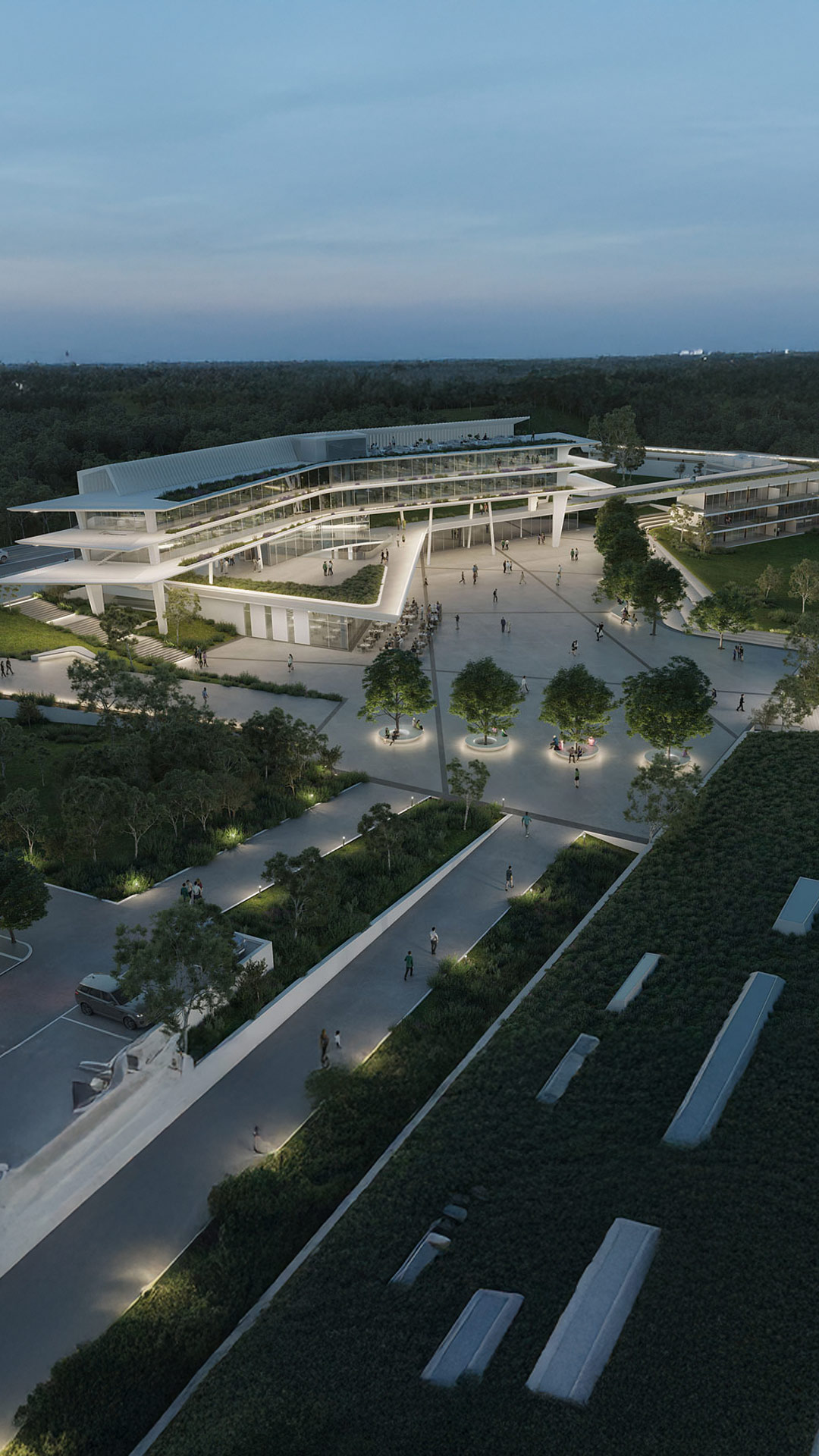 The grounds are designed with clear footpaths and passageways, enabling easy navigation around the centre. With an emphasis on creating a light and energetic atmosphere in each part of the centre, underground areas feature select openings that bring in additional light to the interiors.