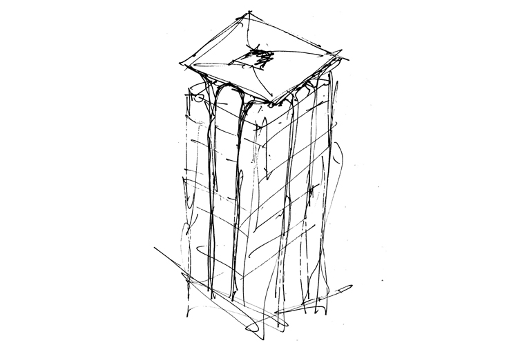 On the exteriors, a distinctive Y element made from steel supports the golden canopies on the roof. The Y element is an extension to the existing structure of the building, supporting the perimetrical columns of the building. These elements run from north to south on the facade, also serving as drainage systems to take water from the roof.