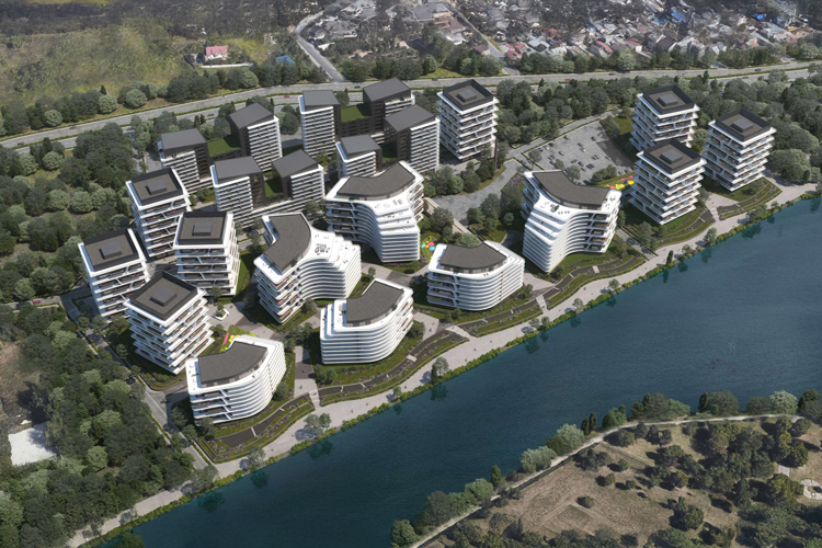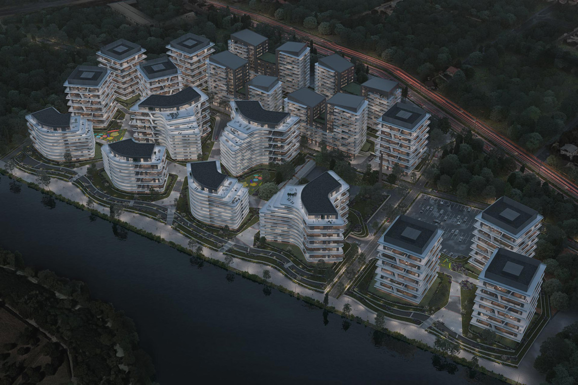 Ambitious in scale, this residential project on the Plumbuita Lake, Bucharest, resolves the challenge of providing exceptional living space to each resident across a 200,000m² development. Located on the periphery of the city, the development maximises views of the lake and optimises natural light throughout.