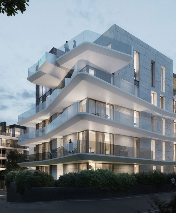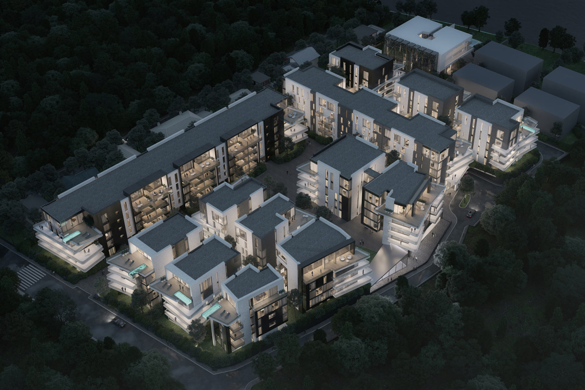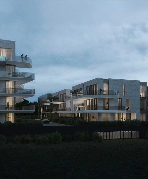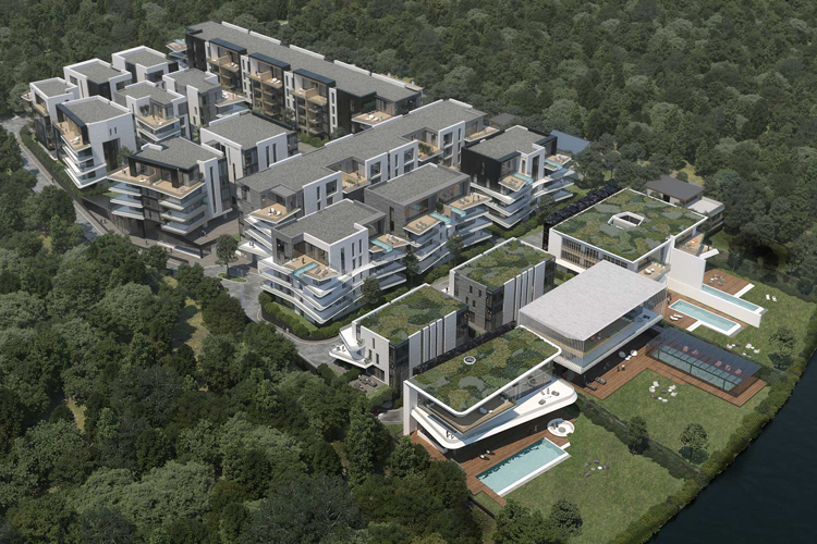 The project offers apartments that range in size, from 80m² to 250m² – and three 1.200m² villas. These are staggered throughout the area, with the larger villas situated on the lake, and smaller apartments sitting further back. Each apartment is fully serviced, with many including swimming pools and all residents having access to underground heated parking.