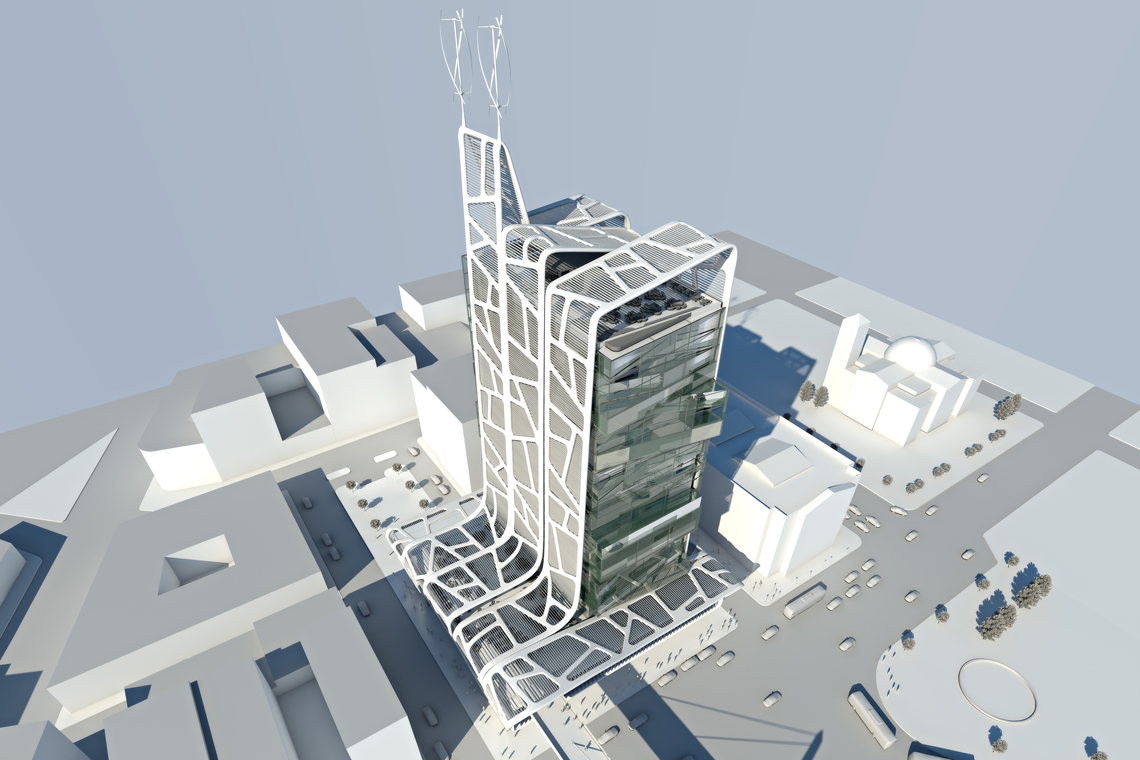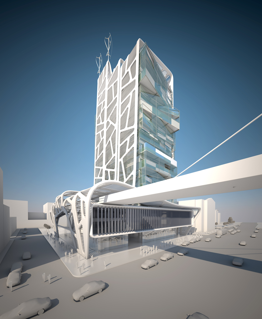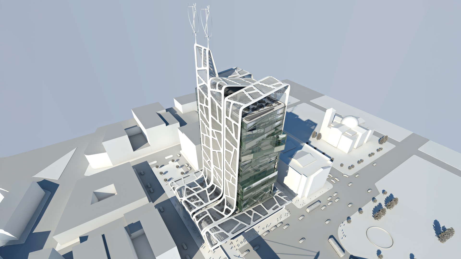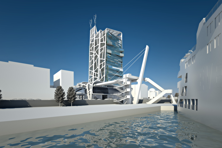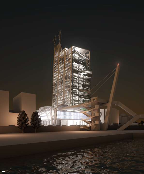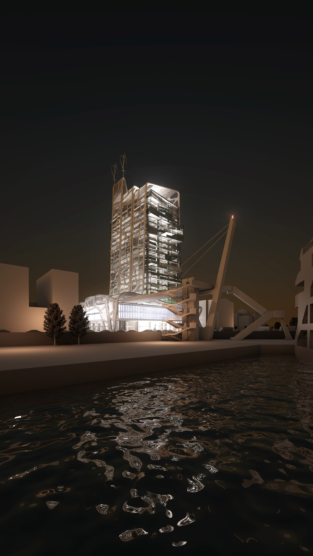 The waterfront of Piraeus is an evocative and busy vista. The proposal for the Piraeus Tower centred around regenerating a former landmark and re-establishing the site as an iconic element on the port. The proposal was to transform the exterior facade in a way that distinctly regenerated the site, while also creating new working spaces and commercial areas for the community.