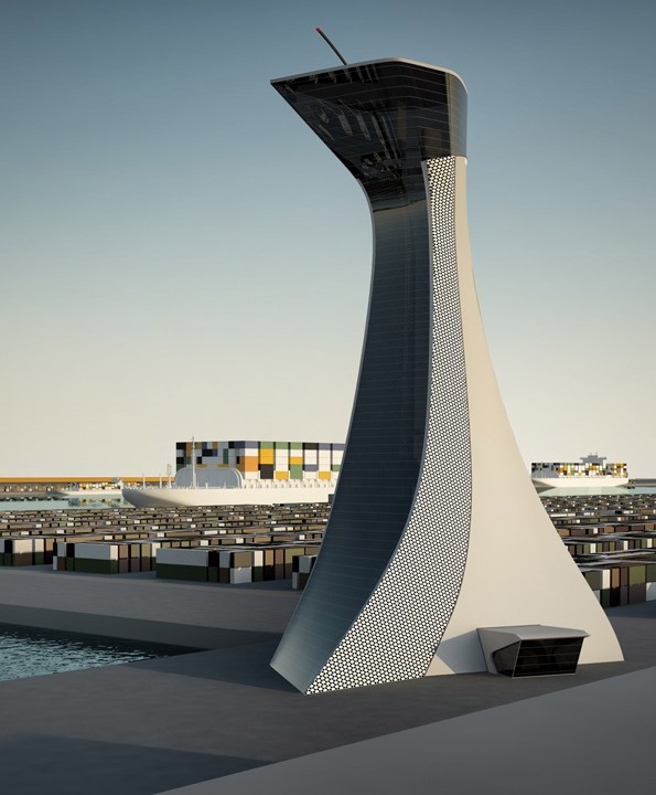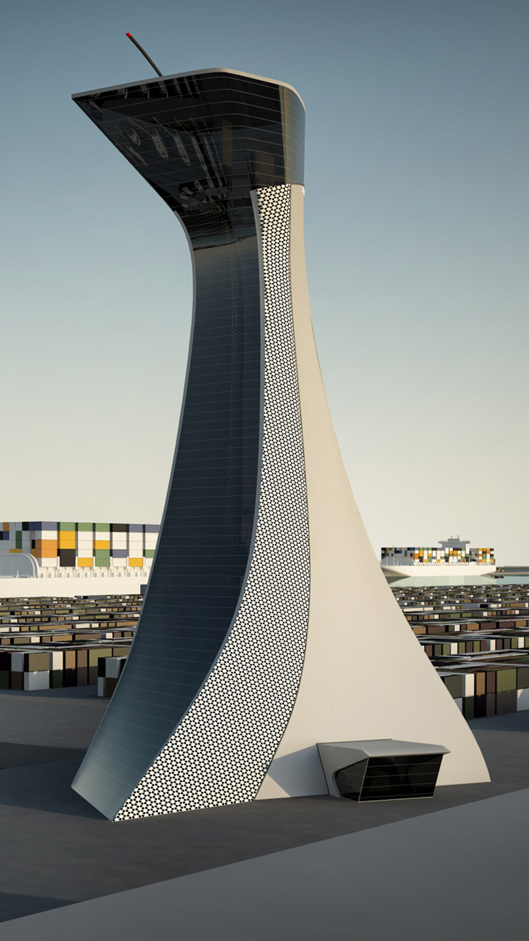 Port Control Tower Doha, Qatar 2012 Proposal LOCATION Doha, Qatar RELATED PROJECTS Sony Music Piraeus Tower Piraeus, Greece One Verdi Proposal Bucharest, Romania Interporto Trento, Italy
