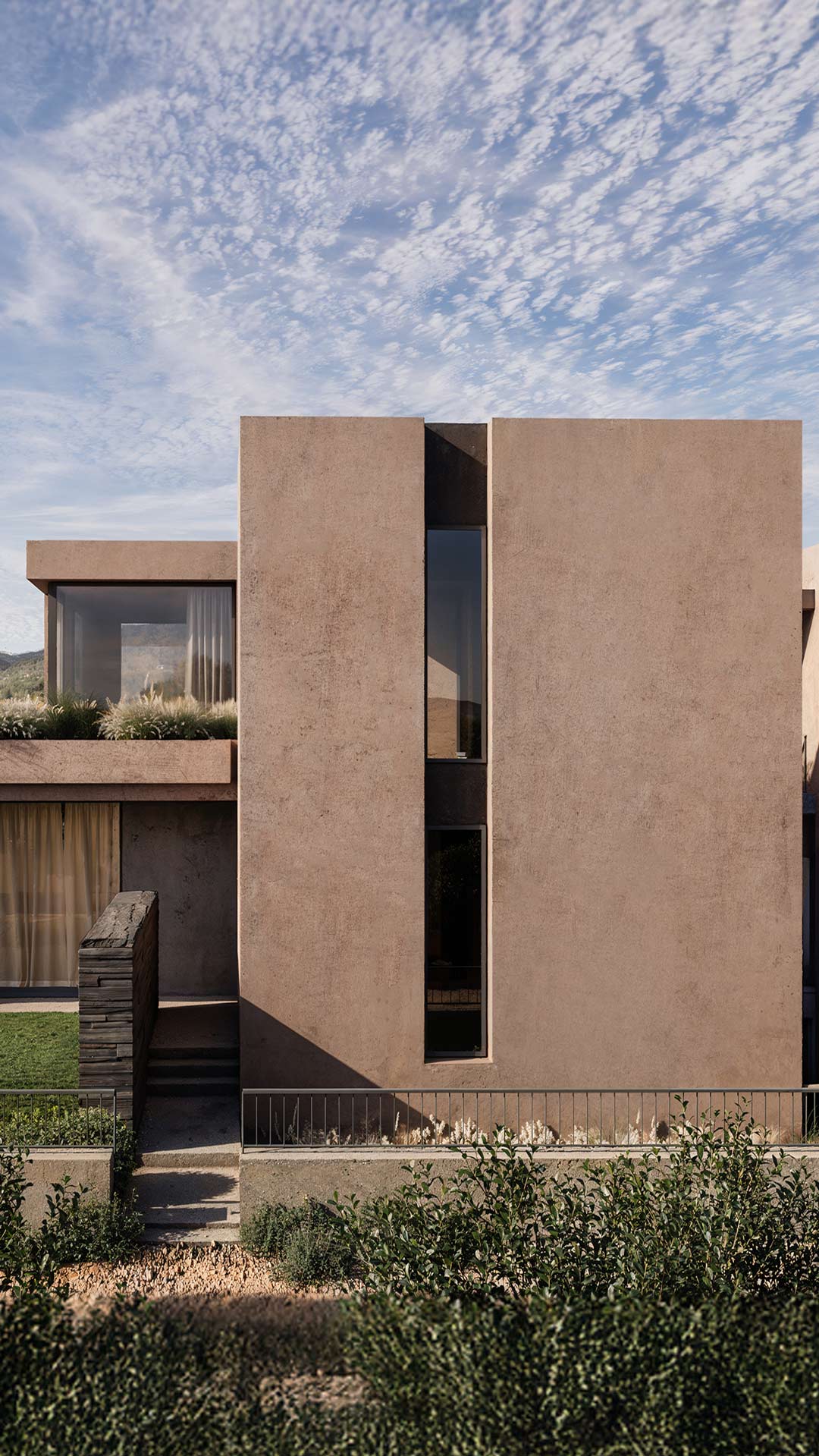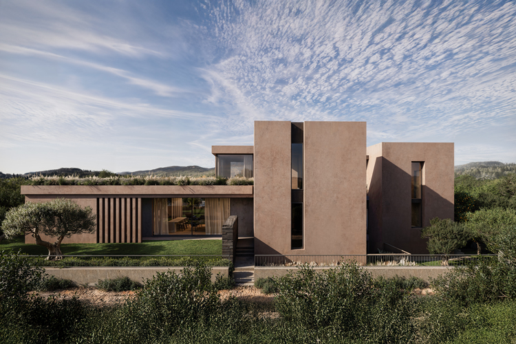 Conceived as a retreat for both intellectual focus and leisure, the residence is organised around a clear spatial relationship between work, rest, and social life. The upper floor hosts a dedicated workspace, positioned to enjoy a privileged view – transforming a typically secondary room into a focal point of the house..