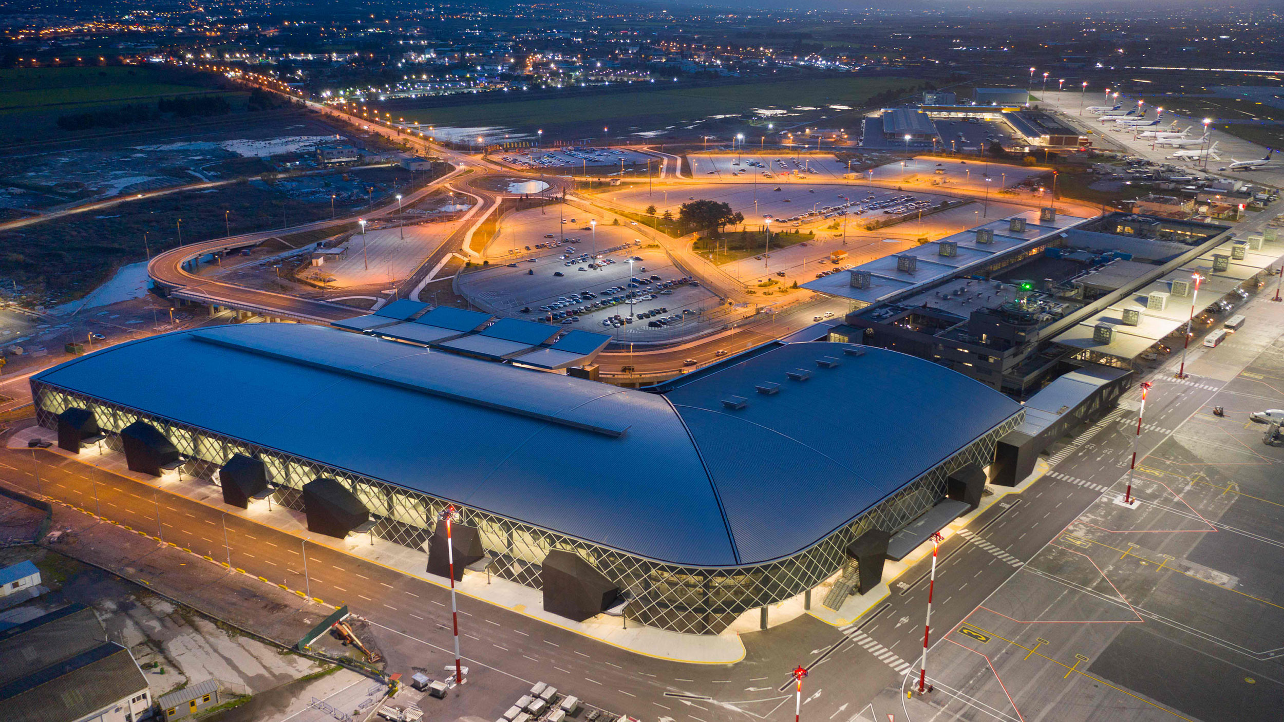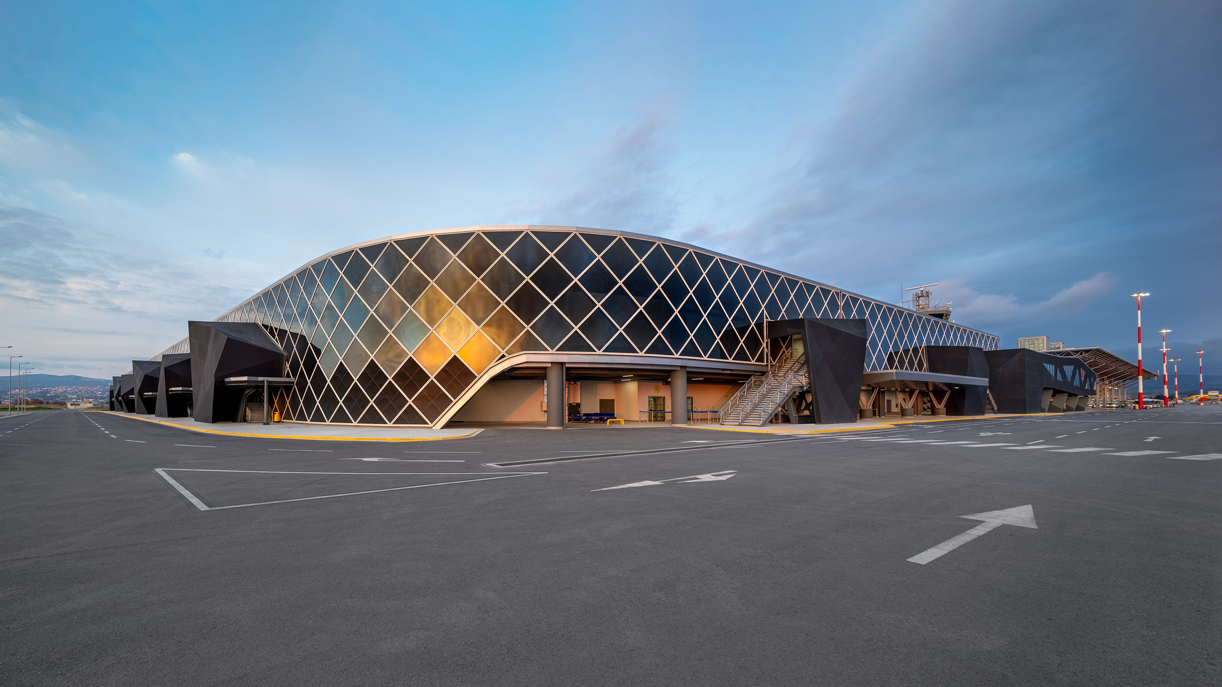 The new terminal building at Thessaloniki Airport marks a departure from the existing site aesthetics and arrives at a new design destination. While referencing the original terminal through some structural details, the vision for this project was to reflect the composite elements of metropolitan life.