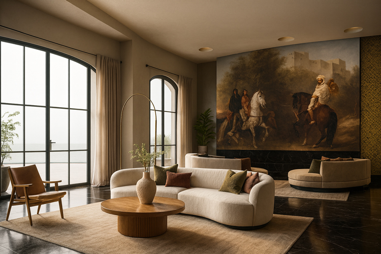 Inside, bedrooms are demarcated by arch entrances, allowing for a free flow between the rooms and between bedrooms and bathrooms. In each bedroom, custom-made wooden wardrobes, wooden beams and engraved wooden slat details bring textural warmth that compliments stone walls and floors.
