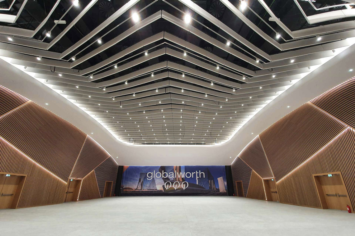 Housing 734 people at full capacity, guests enter the main atrium through double doors on each side of the entrance. Inside, an inclined surface can house retractable steps if needed, which are otherwise subtly stored at the back of the hall.