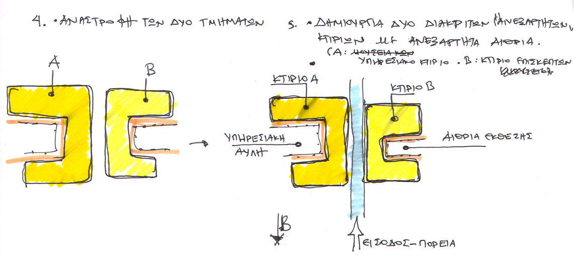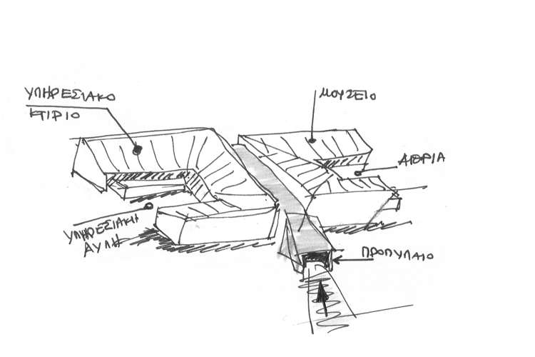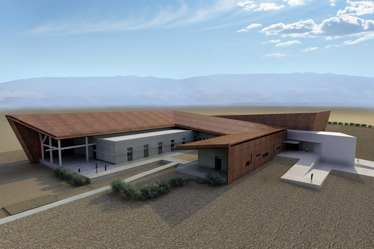 Impressively situated in a natural environment, the structure consists of a central entrance corridor that links to opposing buildings. Each building features a similar spatial pattern, with a horseshoe structure surrounding a central outdoor area. Together, they represented an inverted ancient home, where once a central atrium would have been wholly enclosed. While the core focus of the design is on the exhibitions, there are also laboratories and restoration rooms for active archaeological digs and projects.
